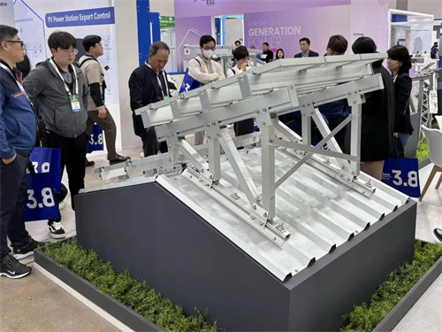 為更好地滿(mǎn)足韓國光伏市場(chǎng)的多樣化需求,安泰新能源展出多款專(zhuān)為韓國市場(chǎng)量身定制的光伏支架解決方案,包括地面碳鋼固定支架、屋頂三角架、屋頂架高及平鋪方案。在工商業(yè)應用場(chǎng)景中,重點(diǎn)展示架高屋頂支架系統,其卓越的結構設計和鋁合金主體材質(zhì)的輕便耐腐蝕性能,完美匹配分布式光伏屋頂,兼具系統整體強度又滿(mǎn)足屋頂承重,收獲參觀(guān)者的一致認可和好評。