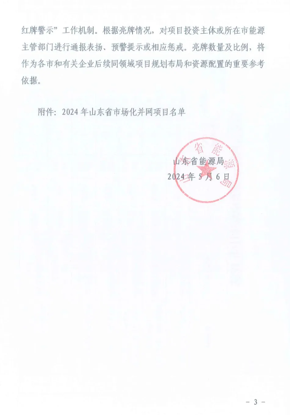 日前,山東省能源局發(fā)布《關(guān)于公布2024年市場(chǎng)化并網(wǎng)項目名單的通知》,通知提到,納入山東省2024年市場(chǎng)化并網(wǎng)名單的項目共118個(gè)、裝機容量1051.2萬(wàn)千瓦,其中,光伏項目117個(gè)共計1046.2萬(wàn)千瓦。