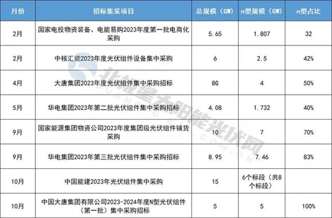 但今年以來(lái),市場(chǎng)對舊式、低效率的PERC產(chǎn)品的需求日漸萎縮,下游電站招標活動(dòng)則表達出市場(chǎng)新趨勢:N型招標占比快速提升,N型光伏組件技術(shù)正在逐步取代P型技術(shù),轉換步伐明顯加快。