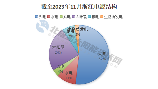 截至2023年11月全國電源裝機占比情況