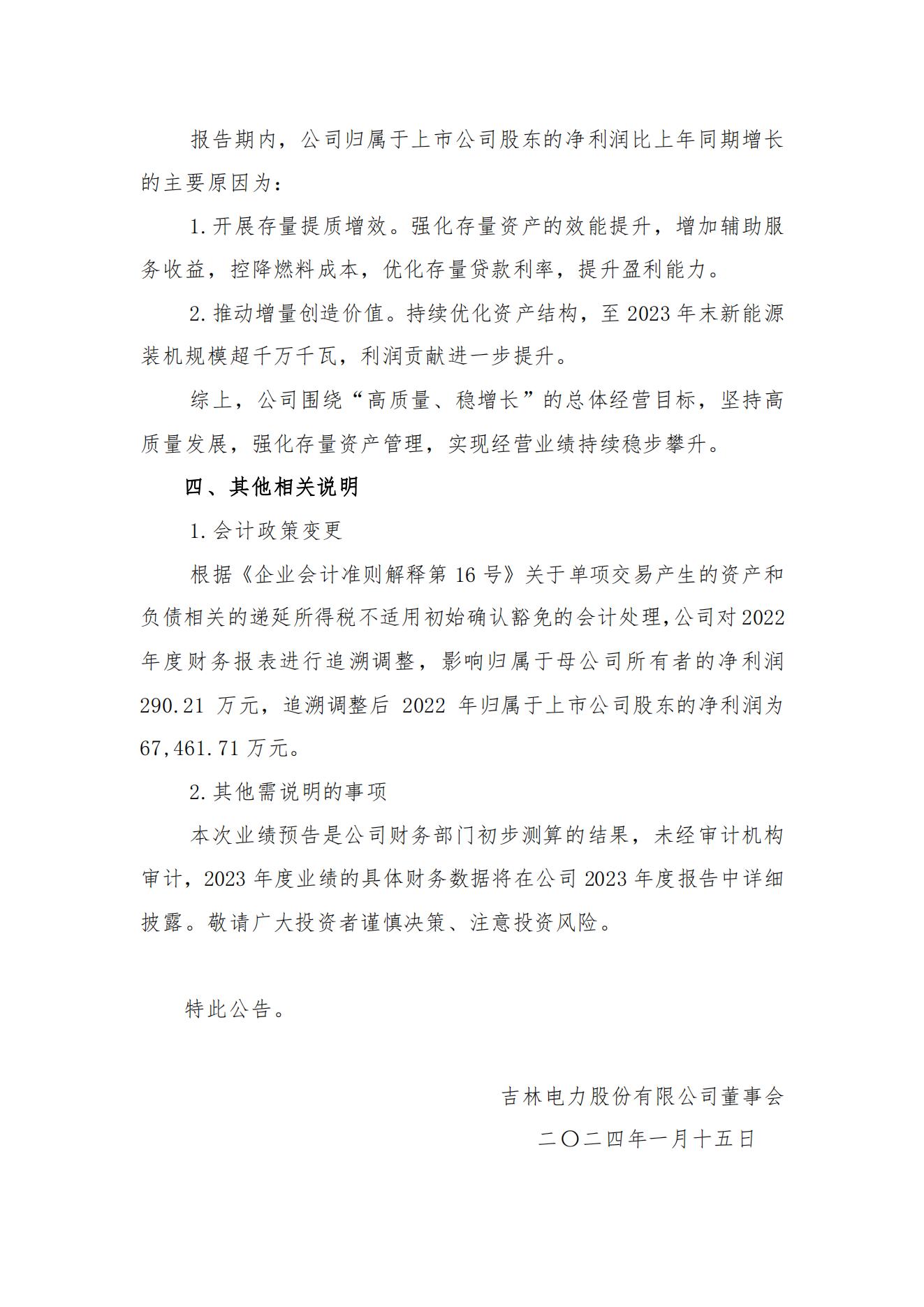 近日,吉電股份發(fā)布2023年度業(yè)績(jì)預告,歸屬于上市公司股東的凈利潤8.9-9.4億元,同比增長(cháng)31.93%–39.34%。