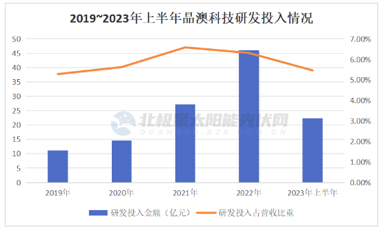 作為制造企業(yè)的“生命力”,為持續提升技術(shù)實(shí)力,晶澳科技研發(fā)投入連年上升,占營(yíng)收比重始終保持在5%以上。
