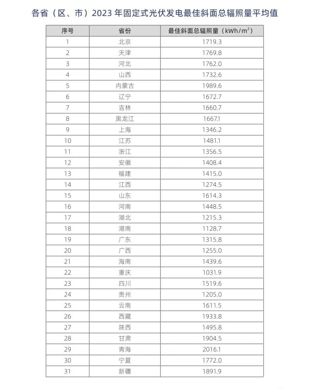 最新!31省市太陽(yáng)能資源與發(fā)電小時(shí)數情況