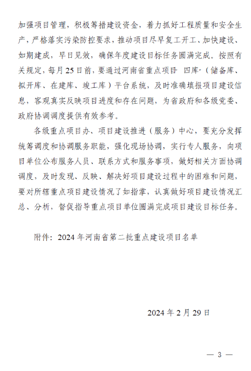 政策全文點(diǎn)擊鏈接:《關(guān)于印發(fā)2024年河南省第二批重點(diǎn)建設項目名單的通知》